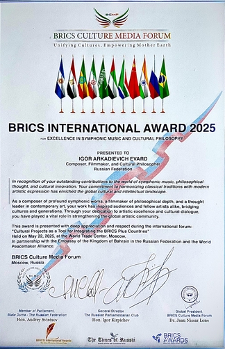 Igor Evard is an international composer, bright representative of modern academic music, a laureate of international Awards, The President of the International Competition of Contemporary Music "Composer of the XXI Century", the editor-in-chief of the all-Russian musical newspaper "We are playing from beginning. Da capo al fine".